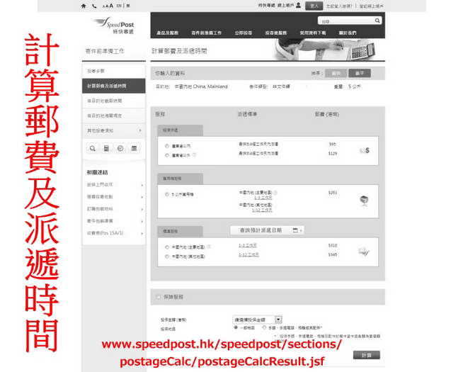 1.http://www.speedpost.hk/speedpost/sections/postageCalc/postageCalc.jsf