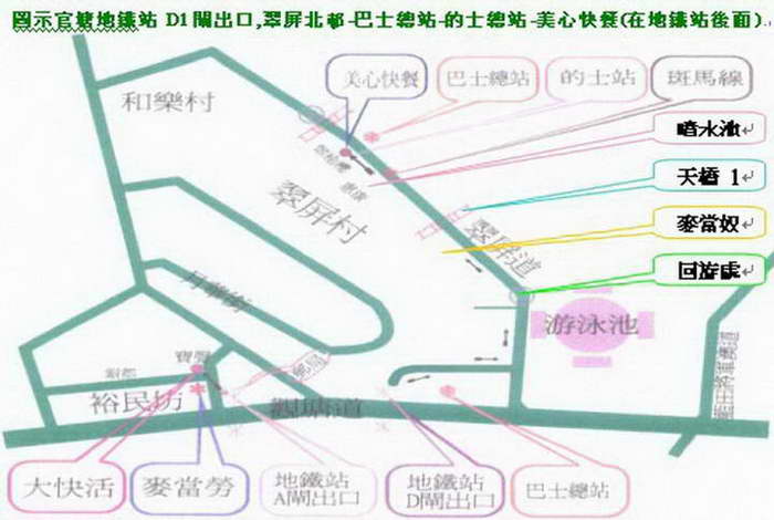 地圖:九龍 觀塘地鐵站D1出口至翠屏村巴士總站